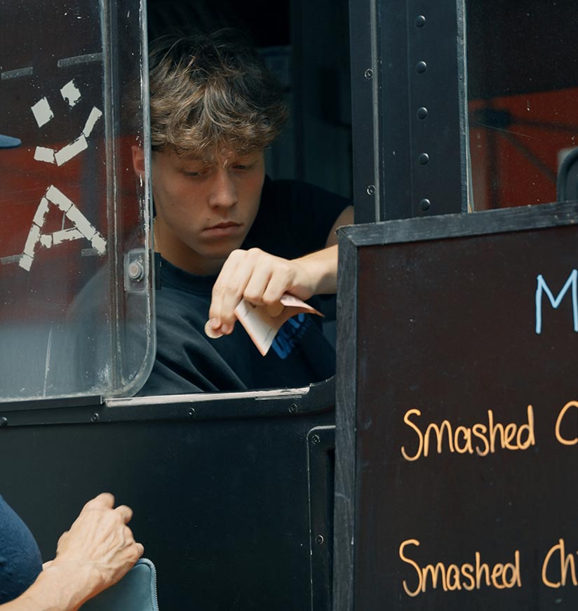 Aus unserem stylischen Foodtruck servieren wir frisch zubereitete Smashed Burger, bei denen der Grill noch glüht und das Brötchen perfekt getoastet ist. 100 % Geschmack, 0 % Kompromisse.